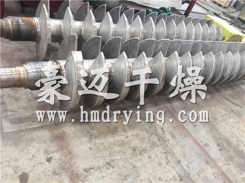 設(shè)備內(nèi)部有兩根或者四根空心轉(zhuǎn)動(dòng)軸,空心軸上密集并聯(lián)排列著扇面楔形中空葉片,結(jié)構(gòu)設(shè)計(jì)特殊巧妙。被干燥的污泥由螺旋送料機(jī)定量地連續(xù)送入干燥機(jī)的加料口,污泥進(jìn)入器身后,通過(guò)槳葉的轉(zhuǎn)動(dòng)使污泥翻轉(zhuǎn)、攪拌,不斷更新加熱介面,與器身和槳葉接觸,被充分加熱,使污泥所含的表面水分蒸發(fā)。^后,干燥均勻的合格產(chǎn)品由出料口排出。