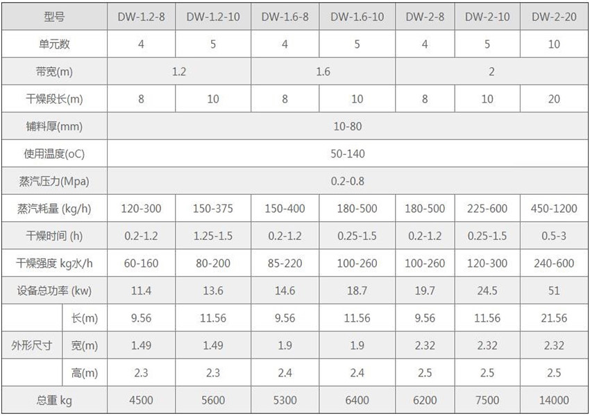 穿流帶式干燥機(jī) 技術(shù)參數(shù)表