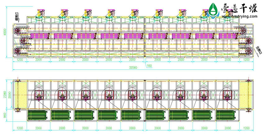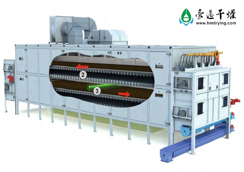 (1) 多層強(qiáng)制循環(huán)帶式干燥機(jī)的傳熱效果好,干燥效率高,投資省,能確保低水分產(chǎn)品。