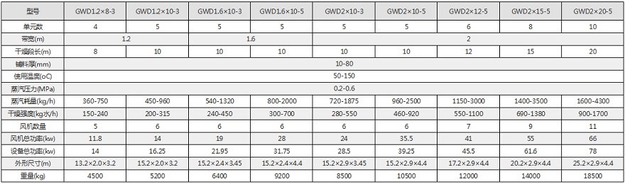 多層強(qiáng)制循環(huán)帶式干燥機(jī) 技術(shù)參數(shù)表