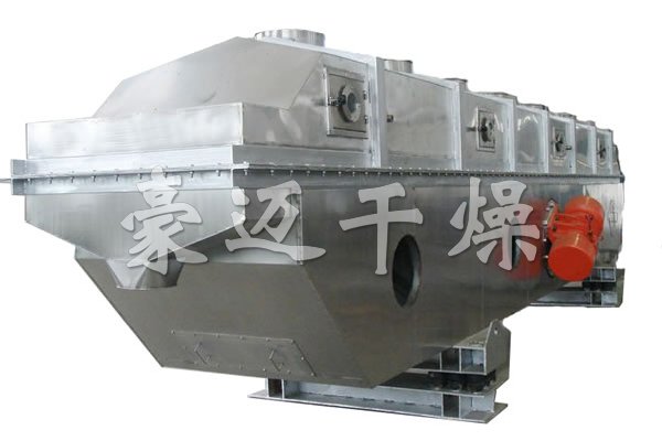 物料自進(jìn)料進(jìn)口進(jìn)入機(jī)內(nèi),在振動力作用下,物料沿水平面流化床拋擲,向前連續(xù)運(yùn)動,熱風(fēng)向上穿過流化床同濕物料換熱后,濕空氣經(jīng)旋風(fēng)分離器除塵后由排風(fēng)1:3排出.干燥物料由排料進(jìn)口排出。