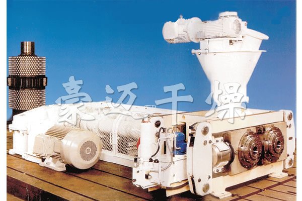 擠壓造粒的形式可以有對輥式和輪輾式兩種,對輥式擠壓是先壓成大塊,再破碎成顆粒,這樣裝置的能力大、顆粒強度高、能耗低,對輥擠壓在國外使用廣泛。輪輾式是在輥表面直接做成有穴槽型的形狀,一次擠成成型顆粒。產(chǎn)品強度較低有時需添加粘結(jié)劑。適合做有機肥和復(fù)合肥等顆粒肥料。