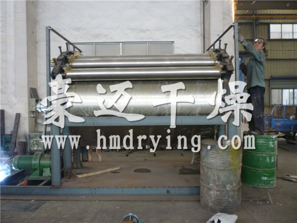 3、熱效率高:是國內(nèi)首臺(tái)熱效率達(dá)到90%以上的雙滾筒刮板干燥機(jī);