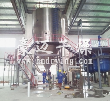 根據(jù)鑫吉利公司的要求,我公司推薦使用ZPG-50中藥浸膏噴霧干燥機(jī)用于食品級(jí)葉黃素的干燥。該設(shè)備是我公司吸收國(guó)外技術(shù)開(kāi)發(fā)的適用于熔點(diǎn)低、含糖高的中藥產(chǎn)品的干燥機(jī)械,并具有不粘壁、物料不焦化、不易吸潮等特點(diǎn)。該裝置根據(jù)干燥產(chǎn)品的特點(diǎn)和性質(zhì)確定噴霧干燥的工藝條件,自動(dòng)化程度高,操作方便,符合GMP要求,該裝置的成功開(kāi)發(fā),解決了多年來(lái)許多熔點(diǎn)低、含糖高的中藥產(chǎn)品不能用噴霧干燥的技術(shù)難點(diǎn),也是對(duì)噴霧干燥在中藥制藥中的應(yīng)用技術(shù)研究的新發(fā)展。