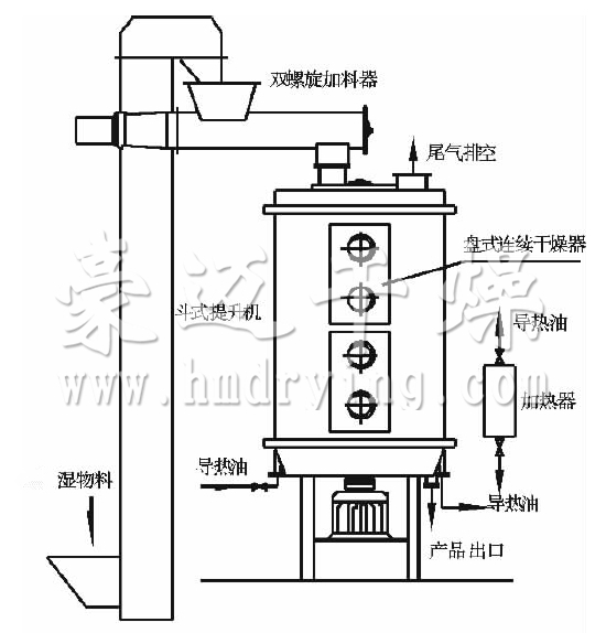 1、連續(xù)運(yùn)行,熱效率高:盤式連續(xù)干燥機(jī)以傳導(dǎo)傳熱方式進(jìn)行干燥,干燥過程中干燥機(jī)內(nèi)只通入極少量( 或不通入) 空氣,其尾氣攜帶量很少,故其熱效率可達(dá)65%以上。