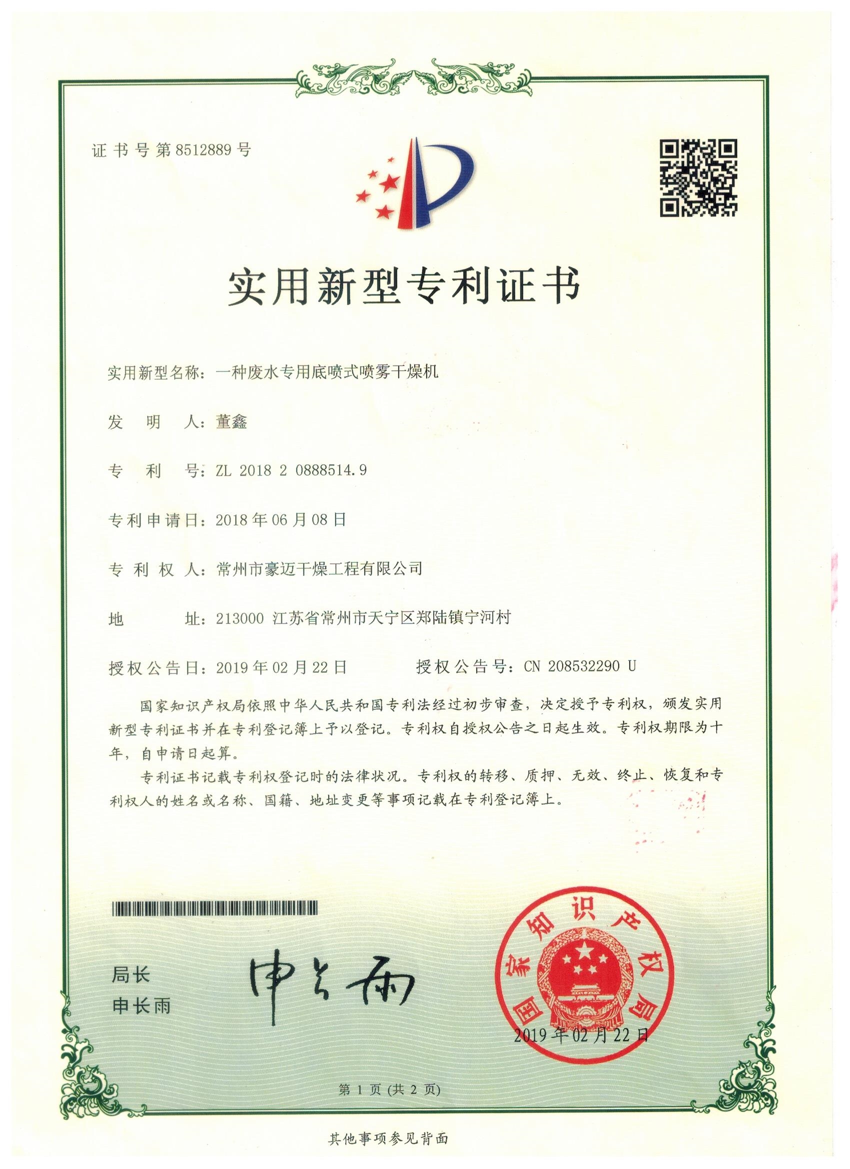 5.該干燥機(jī)屬于新型的節(jié)能環(huán)保干燥設(shè)備,并已經(jīng)投入到實際的工業(yè)化生產(chǎn)中,使用單位普遍反映該類型干燥設(shè)備相對于原有的廢水處理設(shè)備處理量大,投入小。